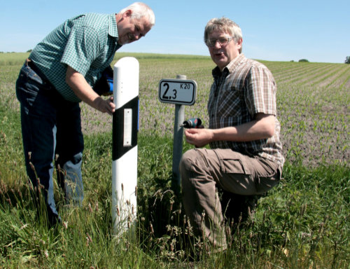 einer besonderen Aktion verabredet: An den Straßen-Leitpfosten