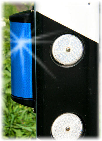 bestehenden orangenen Reflektoren an den Leitpfählen mit blau