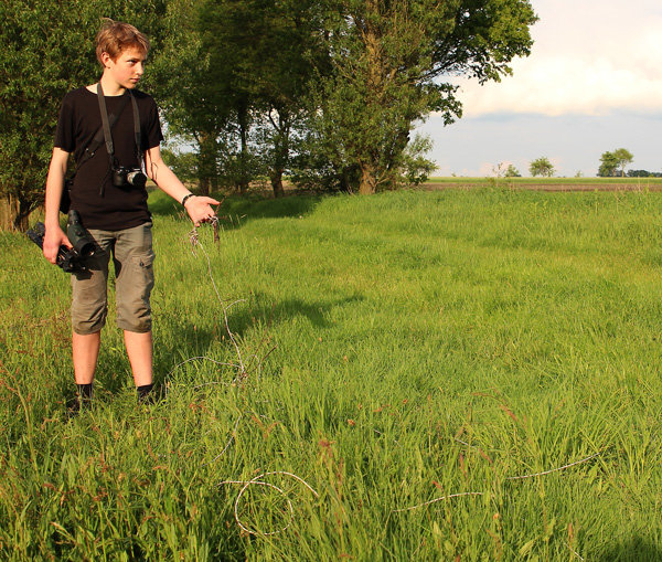 Griem mehrere Stunden mit Fernglas und Fotoapparat im Gelände unterwegs.