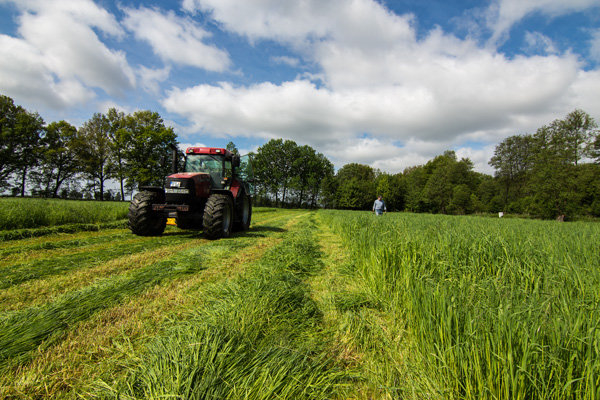 nicht andauernd vom Trecker runter muss!" Dann heult das Mähwerk auf und bald liegt das erste