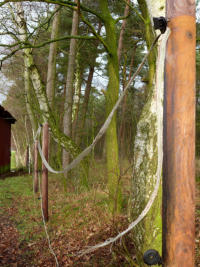 Ein kurzes Stück von der Litze hatte er noch an der einen Stange hängen, aber damit konnte er